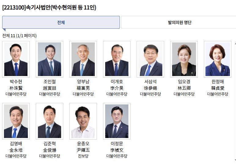 이 법이 빠른 시일 내에 통과될 수 있도록 많은 관심과 성원을 바랍니다.
